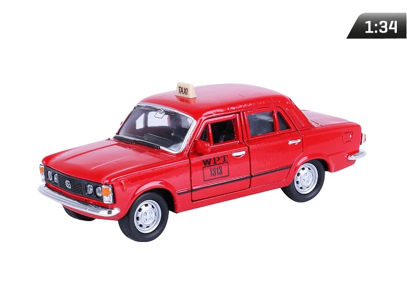 Makett autó, 1:34, PRL 1313 WPT Fiat 125p taxi, piros