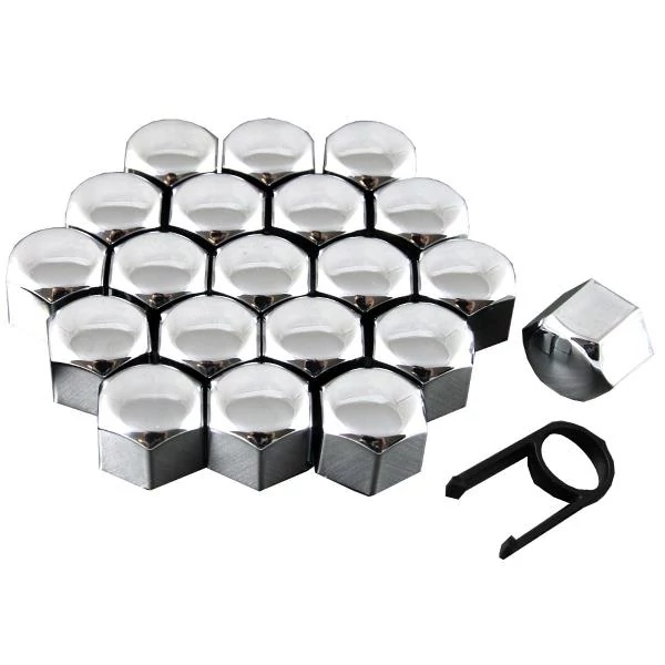 Díszkupak kerékanyára, króm 17mm átmérőjű 20+1 db-os készlet + eltávolító eszköz
