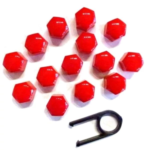 Díszkupak kerékanyára, piros 19mm átmérőjű 20+1 db-os készlet + eltávolító eszköz