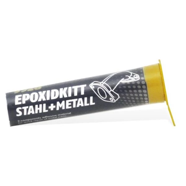 Acél és öntöttvas alkatrészek nagyszilárdságú javításához. Gyorsan köt, folyékony.Üregek, repedések, félrefúrt lyukak javítására fémeken. Kikeményedés után mechanikusan megmunkálható.Használata: A két tubusból egyenlő mennyiségben nyomjunk ki a két komponensből majd keverjük őket össze addig amíg homogén kinézetű ragasztóanyagot nem kapunk belőle. Kenjük a ragasztandó felületre, megmunkálásával a teljes kikeményedéséig várjunk.
