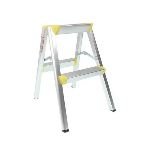 Kétoldalú létra, 2x2 lépős platform Méret felbontás után: magasság: 51 cm távolság: 43 cm Szélesség a lépcső alján: 36 cm Az emelvény méretei : 20x17 cm Lépések: 2x2 Lépések közötti távolság: 25 cm Anyag: alumínium Maximális. terhelés: 150 kg Súly: 1,5 kg
