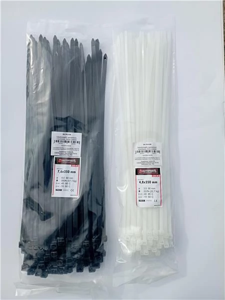 100 db/csomag Szélesség: 3,6 mm Hossz: 300 mm Szín: fehér Anyaga: Nylon, UV-álló, minőségét megőrzi -40 / + 85 ° C hőmérsékleti tartományban Tanúsítvány: CE Szakítószilárdság: 18 kg