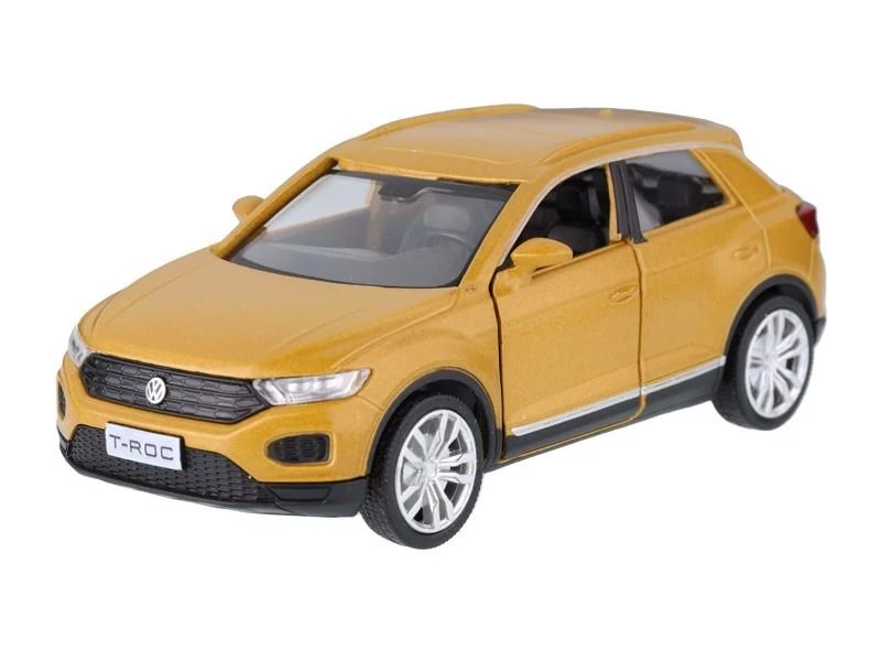 Autómodell - VW T-ROC 1:32 méretarányban készült modell. Leírás: fémből készült modell műanyag elemekkel gumiabroncsok nyitható ajtó