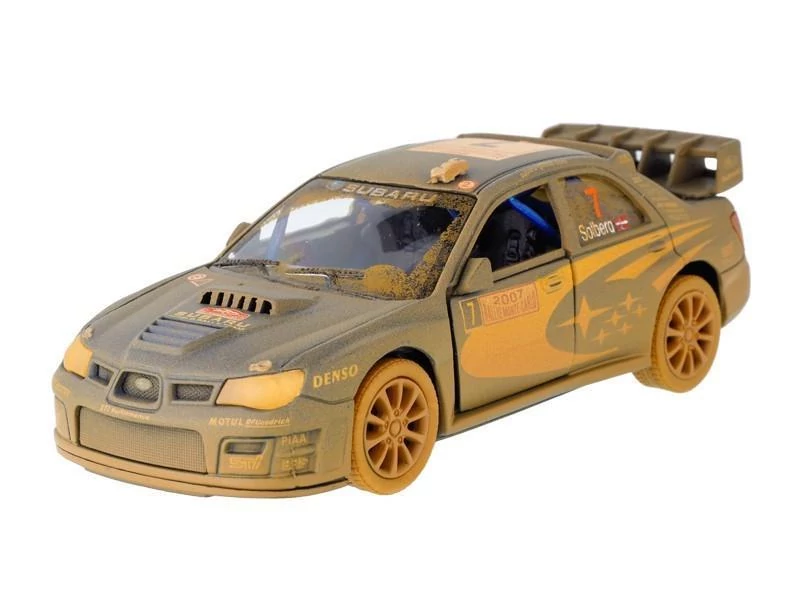Autómodell - SUBARU IMPREZA WRC 2007 A modell 1:36 méretarányban készül. Leírás: fémből készült modell műanyag elemekkel felhúzható (az autó hátrahúzása után a mechanizmus automatikusan felteker, és az autó előrehalad) nyitható ajtó 3+ A termék rendelkezik CE európai minőségi és biztonsági tanúsítvánnyal.