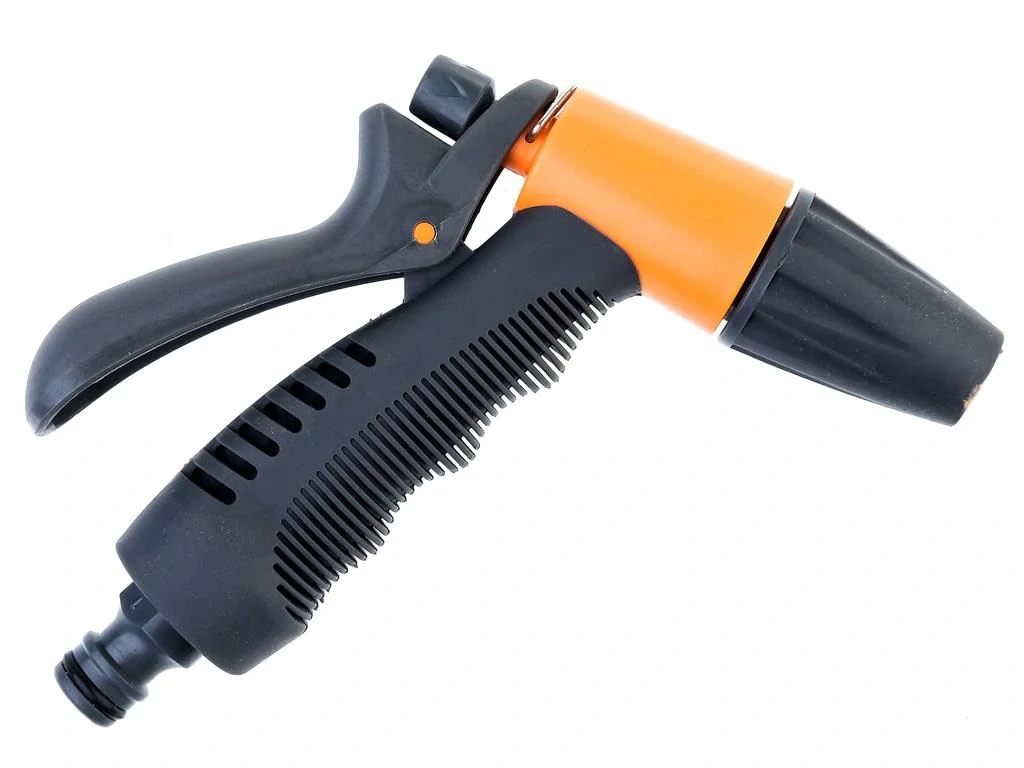 Műanyag locsolópisztoly öntözéshez. - Állítható fúvóka - A vízfolyás szabályozásának széles skálája a permetezéstől a locsolásig - folyamatos működés funkció, a kiválasztott vizfolyás típuson - Gumival bevont fogantyú. Tökéletes mosáshoz és gyengéd öntözéshez.