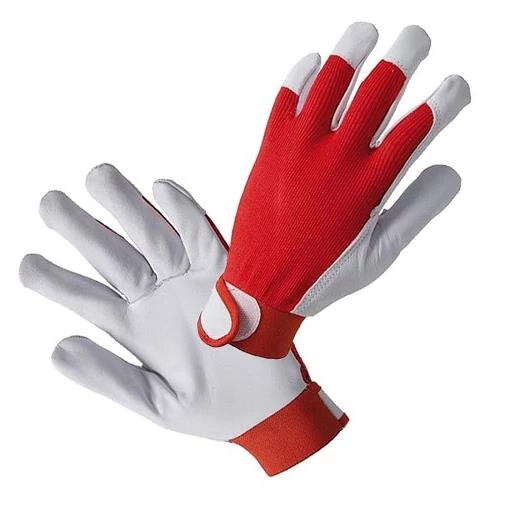 Munkakesztyű PREMIUM, kecskebőr+ szövet, tépőzárral, Piros-fehér, méret: 10