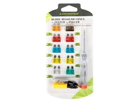 Normál biztosíték készlet teszterrel és kiszedővel 6-24V, 10db-os
