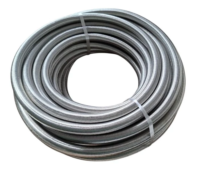 Etanol álló, belső vásznas benzincső, üzemanyagcső, kűlső fémszövet erősítéssel, Ø08mm, SAE J30 R6